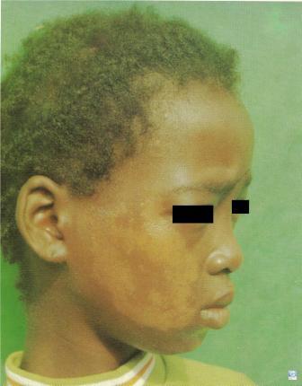 - Lepromatosa (Multibacilar) (depressão da imunidade do hospedeiro): As lesões tendem a ser maiores, abundante e rosto pode se infiltrado (fácies leonina).